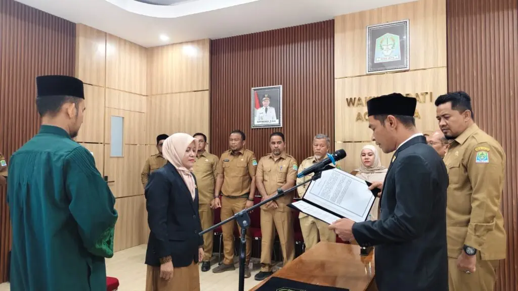 Aceh Jaya, Berita Aceh Jaya – Pemerintah Kabupaten Aceh Jaya melantik Kepala Dinas Perpustakaan dan Arsip yang baru sebagai bagian dari rotasi jabatan pimpinan Satuan Kerja Perangkat Kabupaten (SKPK). Pelantikan tersebut dilakukan oleh Wakil Bupati Aceh Jaya, Muslem D, di ruang kerjanya pada Senin (2/2/2026), sebagai upaya penyegaran organisasi dan pengisian jabatan menyusul adanya kepala dinas yang memasuki masa purnabakti Aparatur Sipil Negara (ASN).